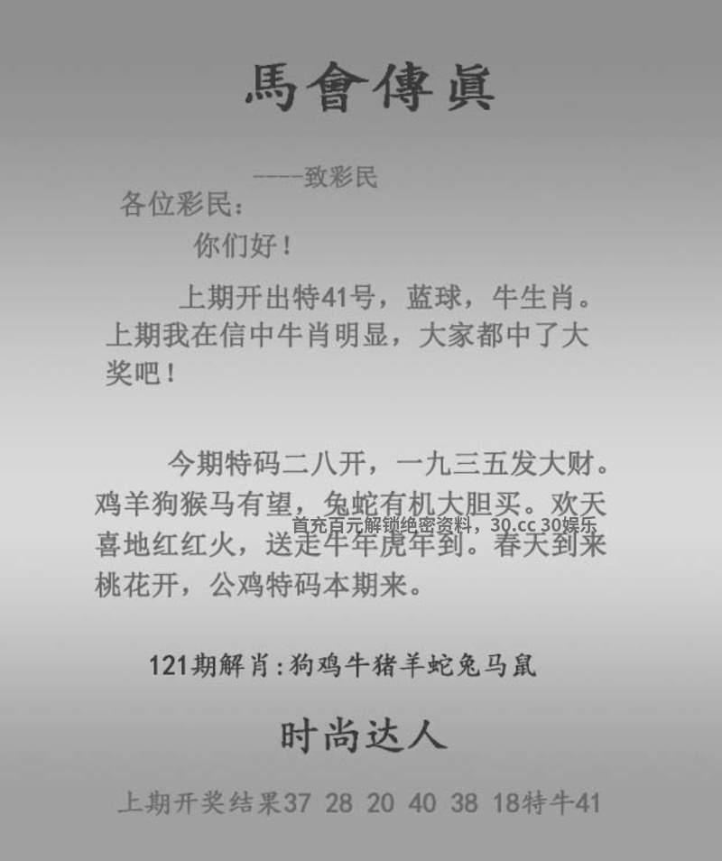 118期马会传真: 今期生肖看三五,马马虎虎来骗人 牛狗鸡马本期有,还有三二四零中 四六等于二十四,好码就从中间出 三一四二是何肖,不管三七二十一 乐在其中 解:今期牛狗鸡马本期有,解家禽生肖牛猪鸡羊狗马,四六等于二十四,解四头特码40-49 综合:狗马鼠猪猴羊牛蛇兔 六肖:狗马鼠猪猴羊 |